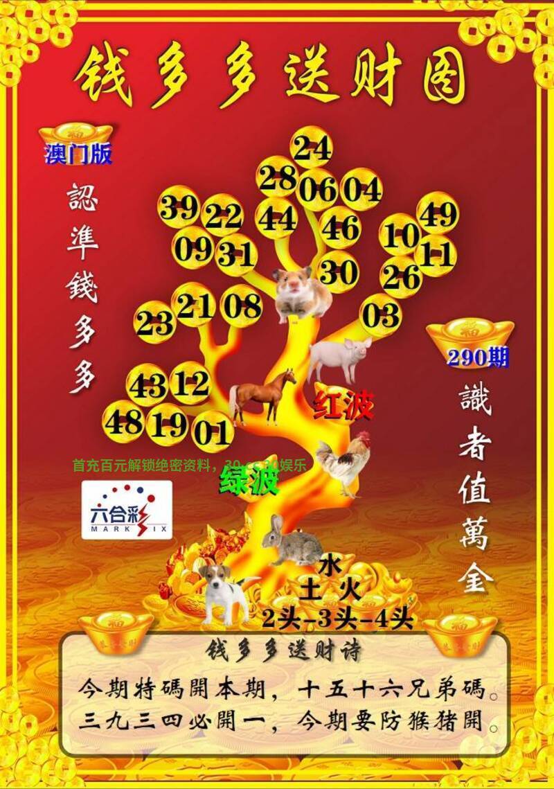 290期:🚩两波发财🚩【绿波红波】开:猪19准 |